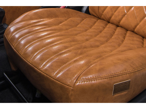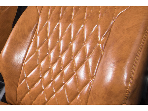 Antique Design D Cream Yellow Color installed on Hustler. Beautifully curved diamond stitching. You can see the high level of craftsmanship.