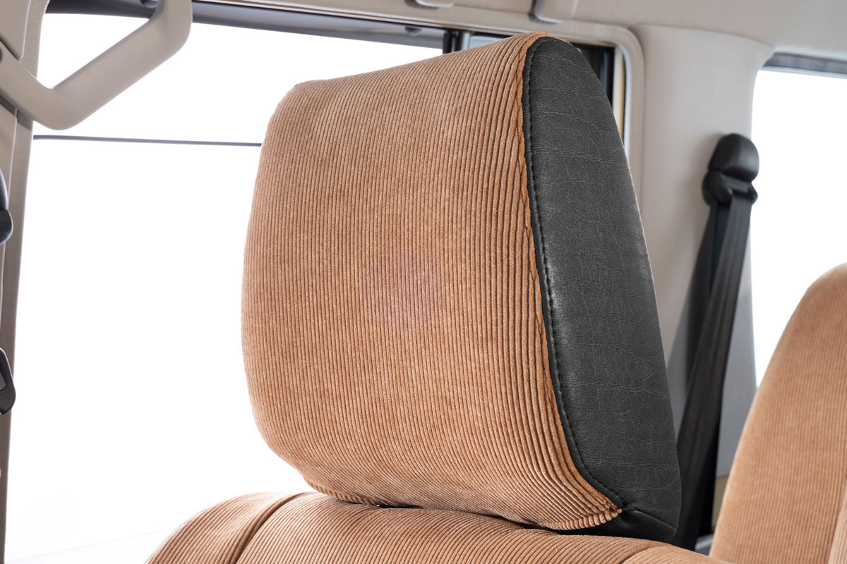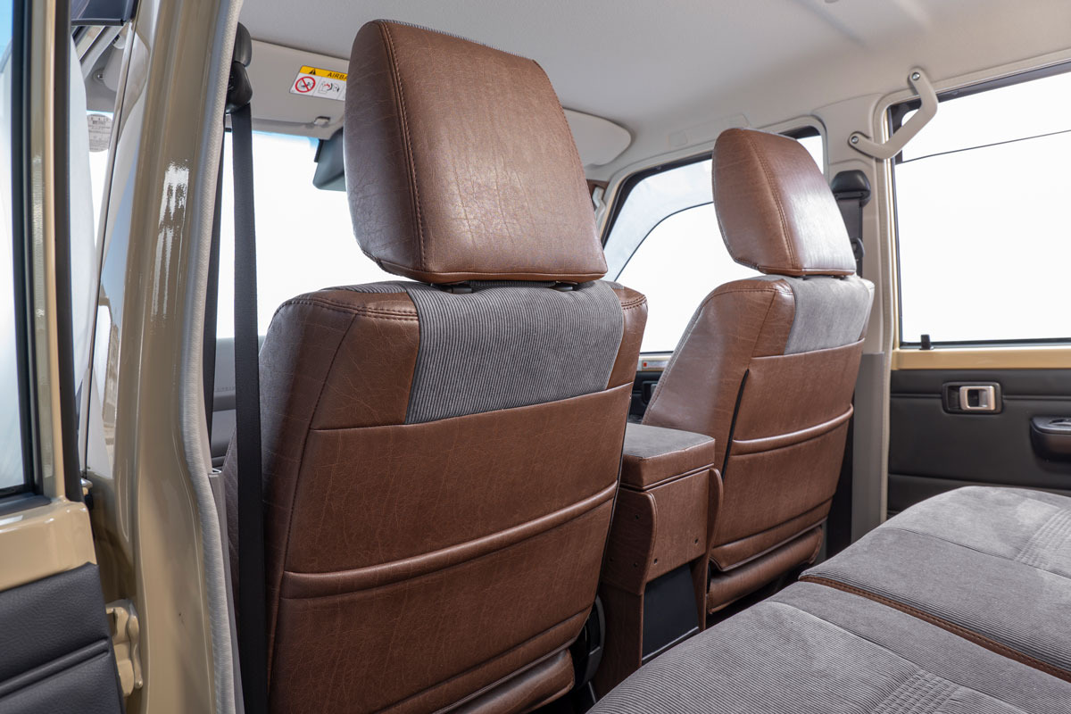 The combination of a casual look and antique leather with a strong retro feel creates a stylish seat cover.