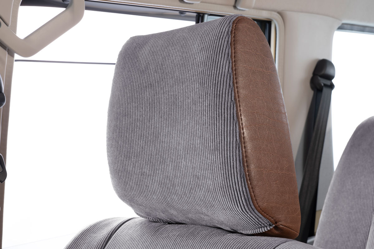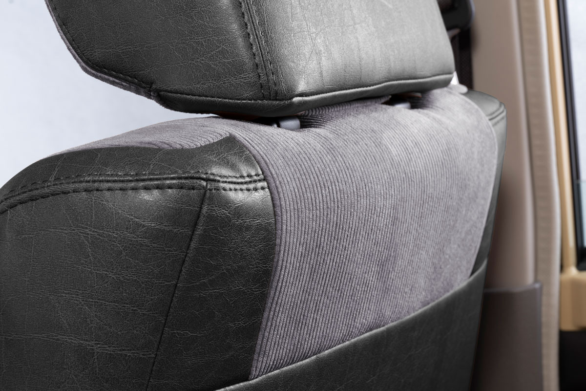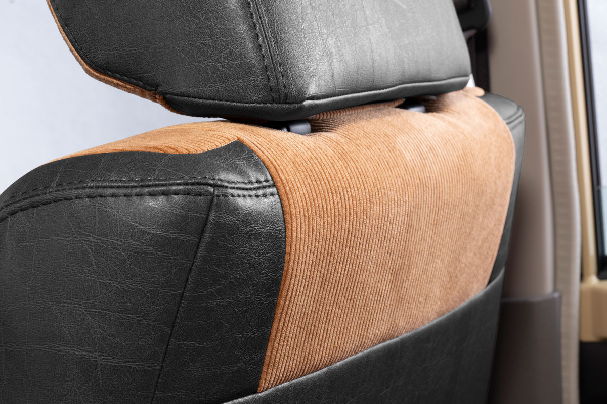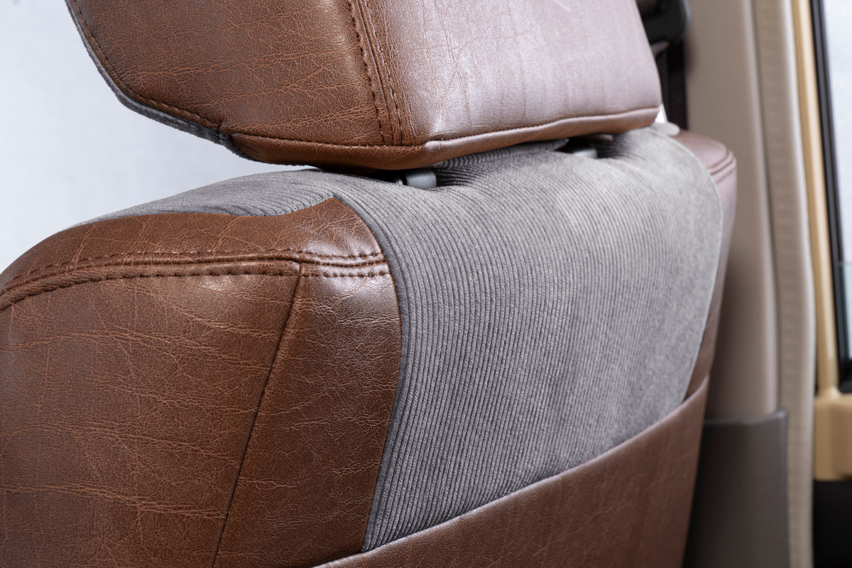 The combination of a casual look and antique leather with a strong retro feel creates a stylish seat cover.