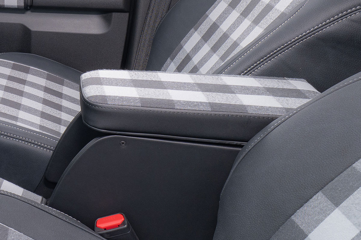 Fabric: Dove Grey Check Leather: Black / Beige / Greige / Ivory Stitching: Grey |