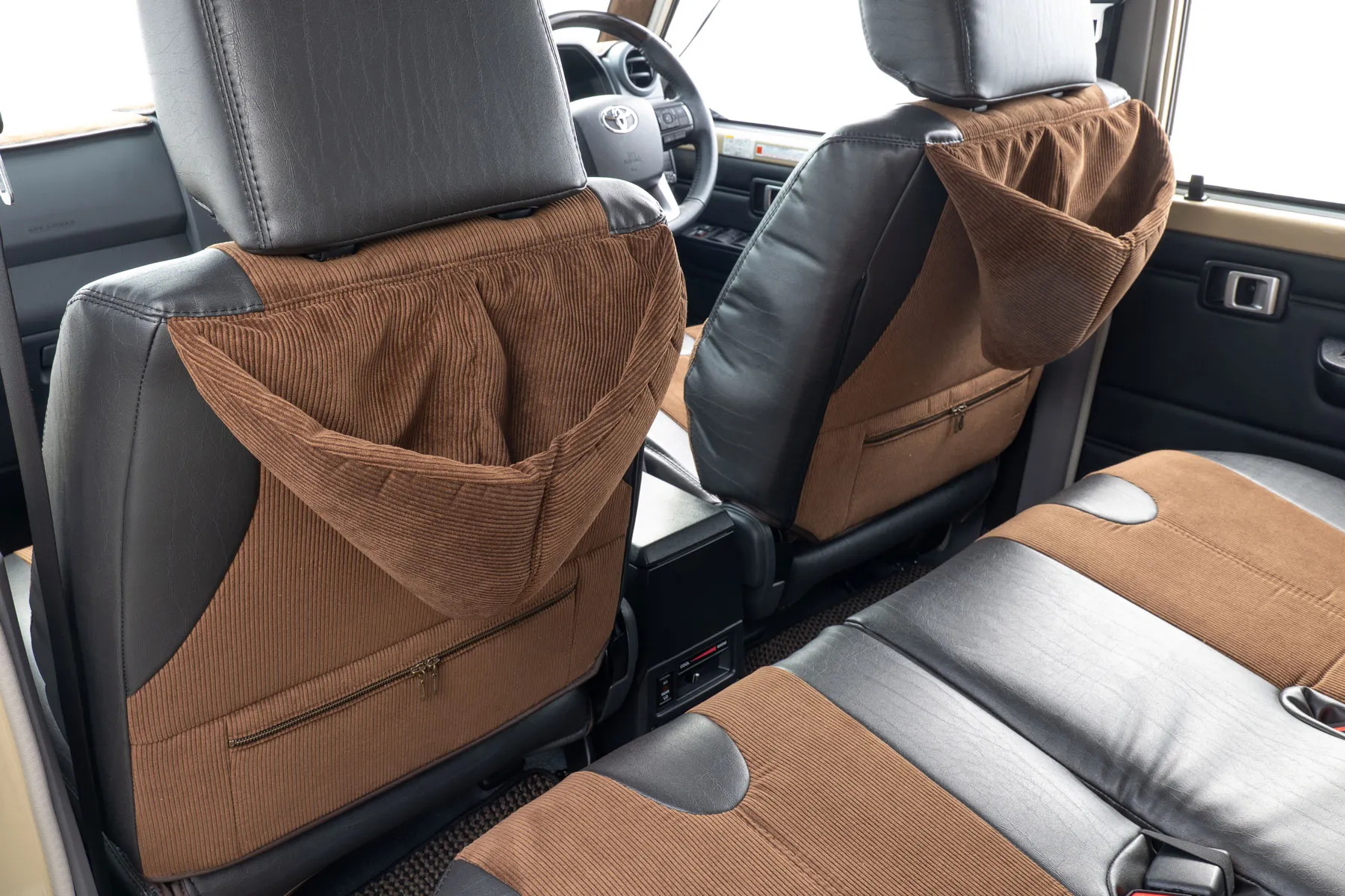 前列背面下部にはジッパースタイルの後部座席用バックポケットを標準装備。<ランドクルーザー70 再再販モデル装着。>