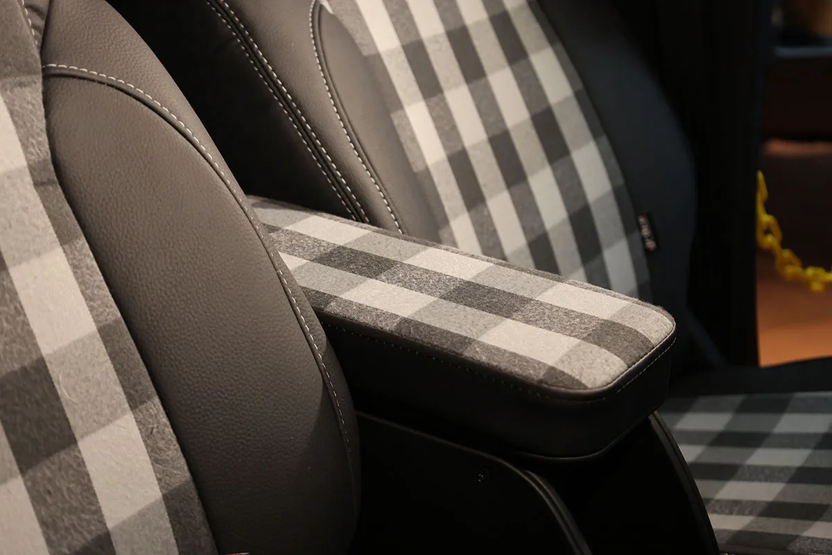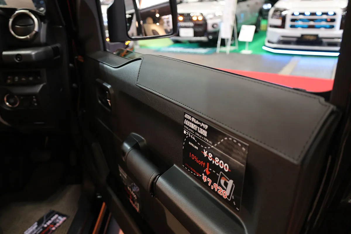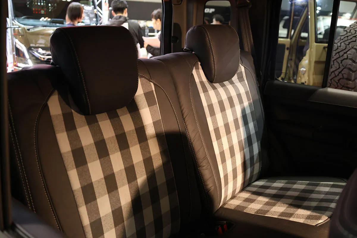 2台目に紹介するのはジムニーノマドに装着した新商品!(名称未定)モノトーンのチェック柄が愛らしくもクールな仕上がりです!