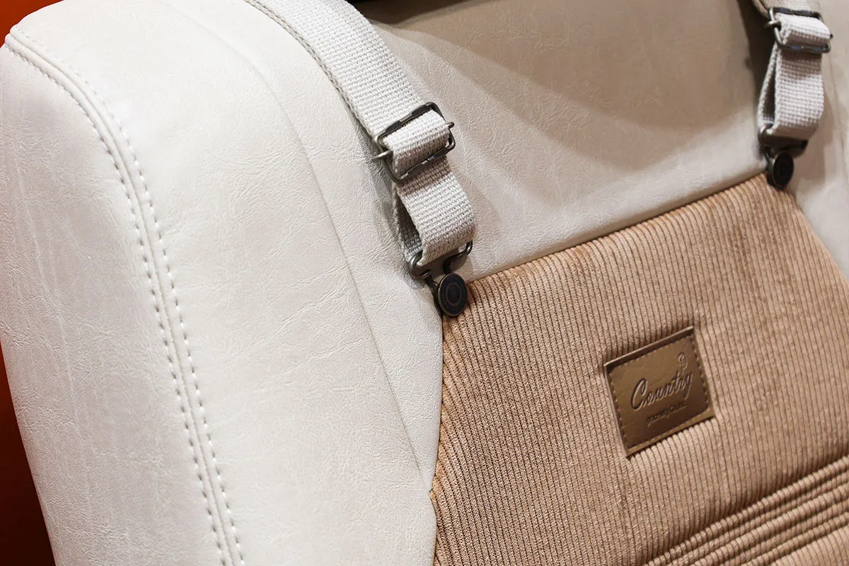 アンティークカントリーシリーズもデモシートカバーの展示がございました!人気のオーバーオールデザインです!