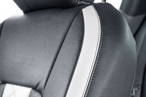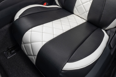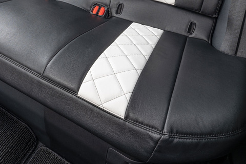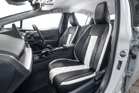 一目でわかるカスタム感。車内が明るく際立つシートカバーデザイン。