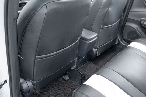 シート背面ではレザーの質感がよく見える仕様。シートバックポケットも標準装備で便利機能も確保されています。