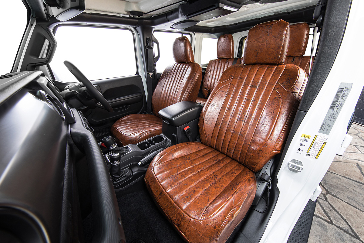 JEEP ラングラーに装着したアンティークデザインS アンティークブラウンカラー。シート背面デザイン。