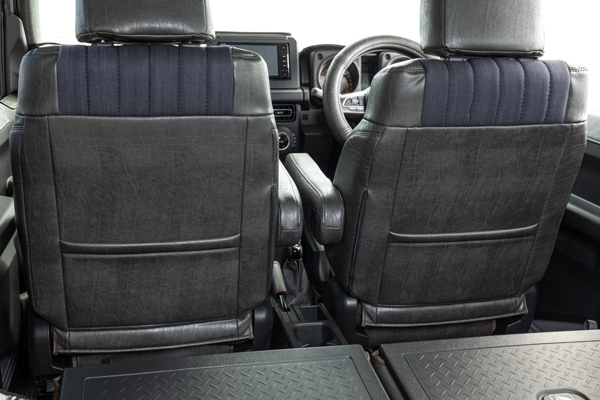 デニムとアンティークレザーを組み合わせたシートカバーができました|grace JB64/JB74 JIMNY