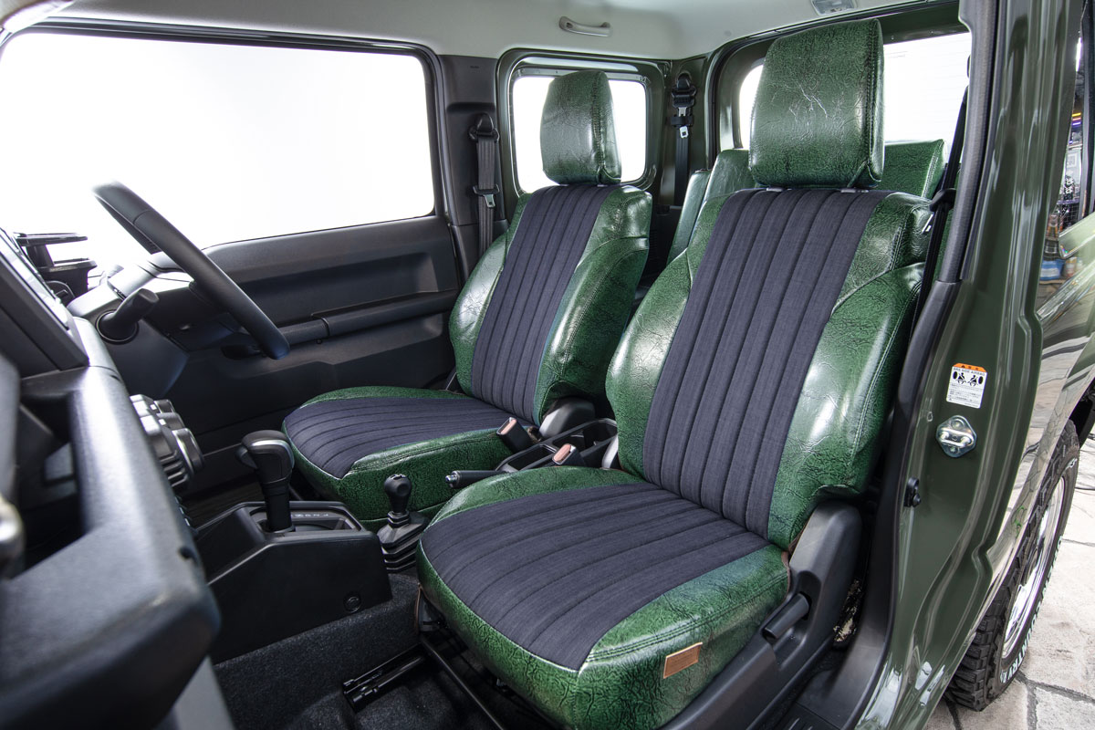 デニムとアンティークレザーを組み合わせたシートカバーができました|grace JB64/JB74 JIMNY