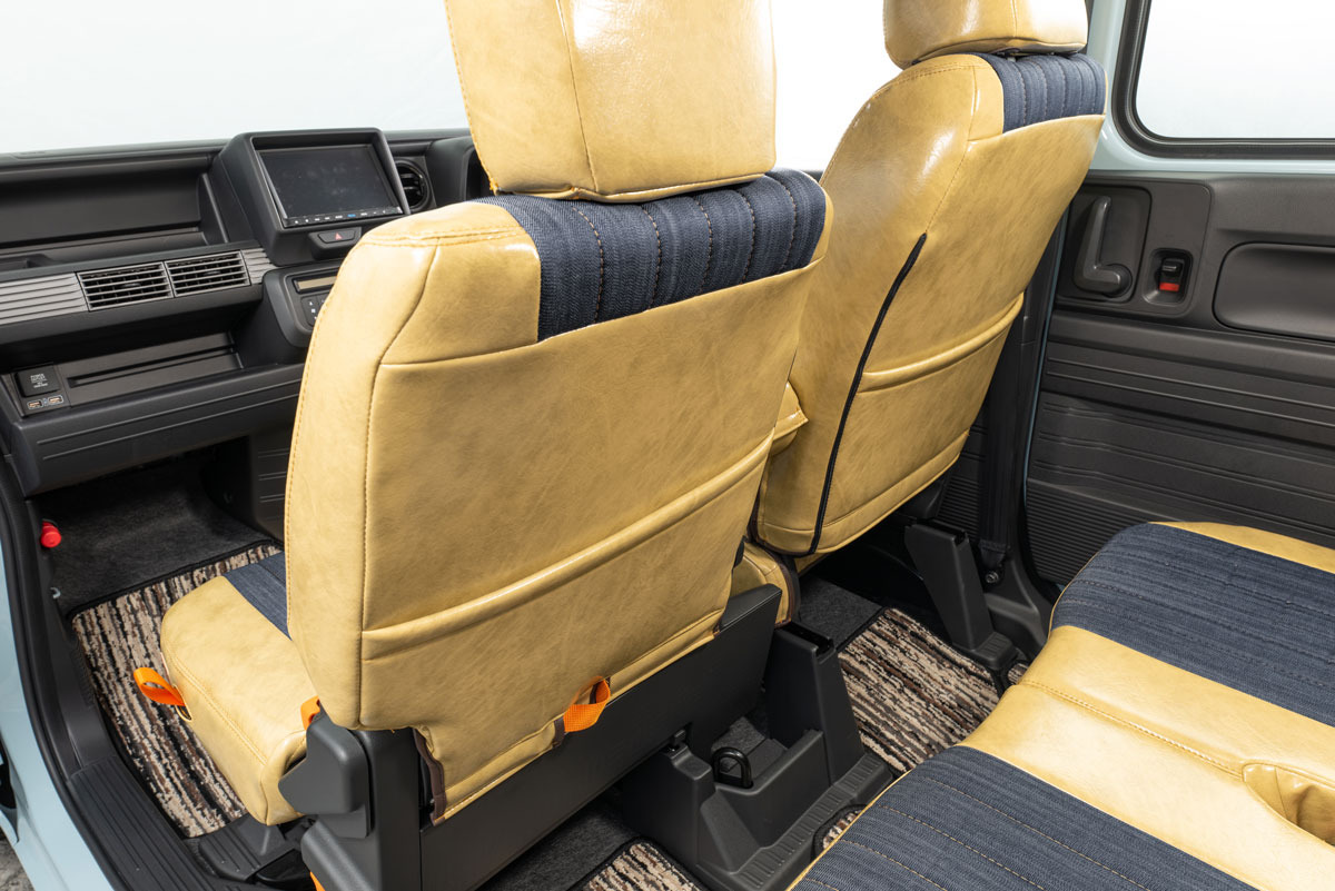 N-VAN前席に装着したアンティークデニムインディゴ アンティーククリームイエローカラー。