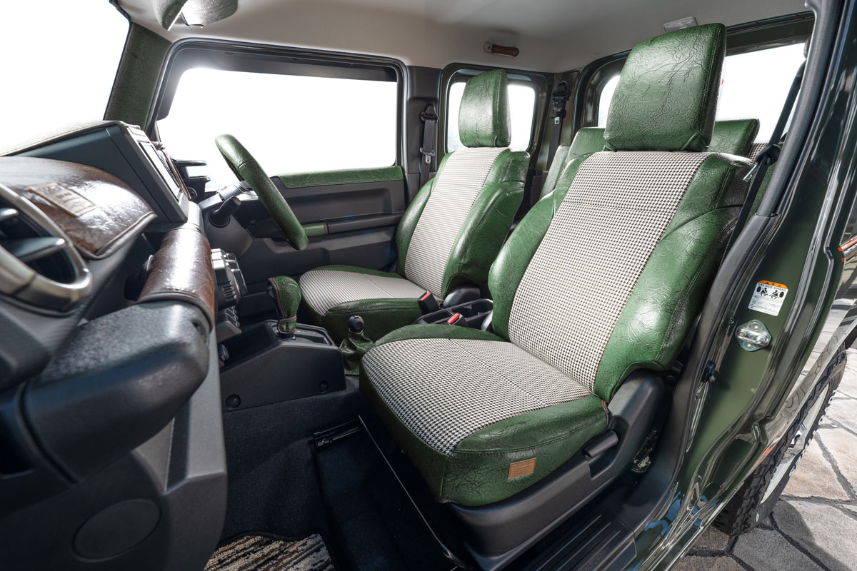 ジムニーJB64前席に装着したアンティーク千鳥 アンティークブラウンカラー。