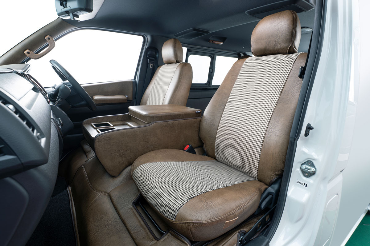タウンエース前席に装着したアンティーク千鳥 アンティークブラウンカラー。
