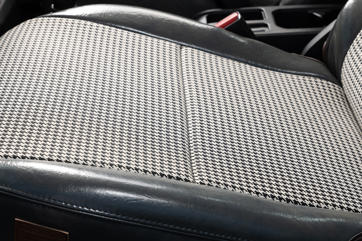 人気シートカバーシリーズ、アンティークに千鳥織生地を組み合わせた