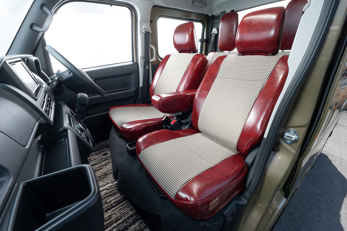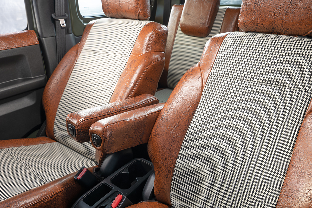 ジムニーJB64前席に装着したアンティーク千鳥 アンティークブラウンカラー。