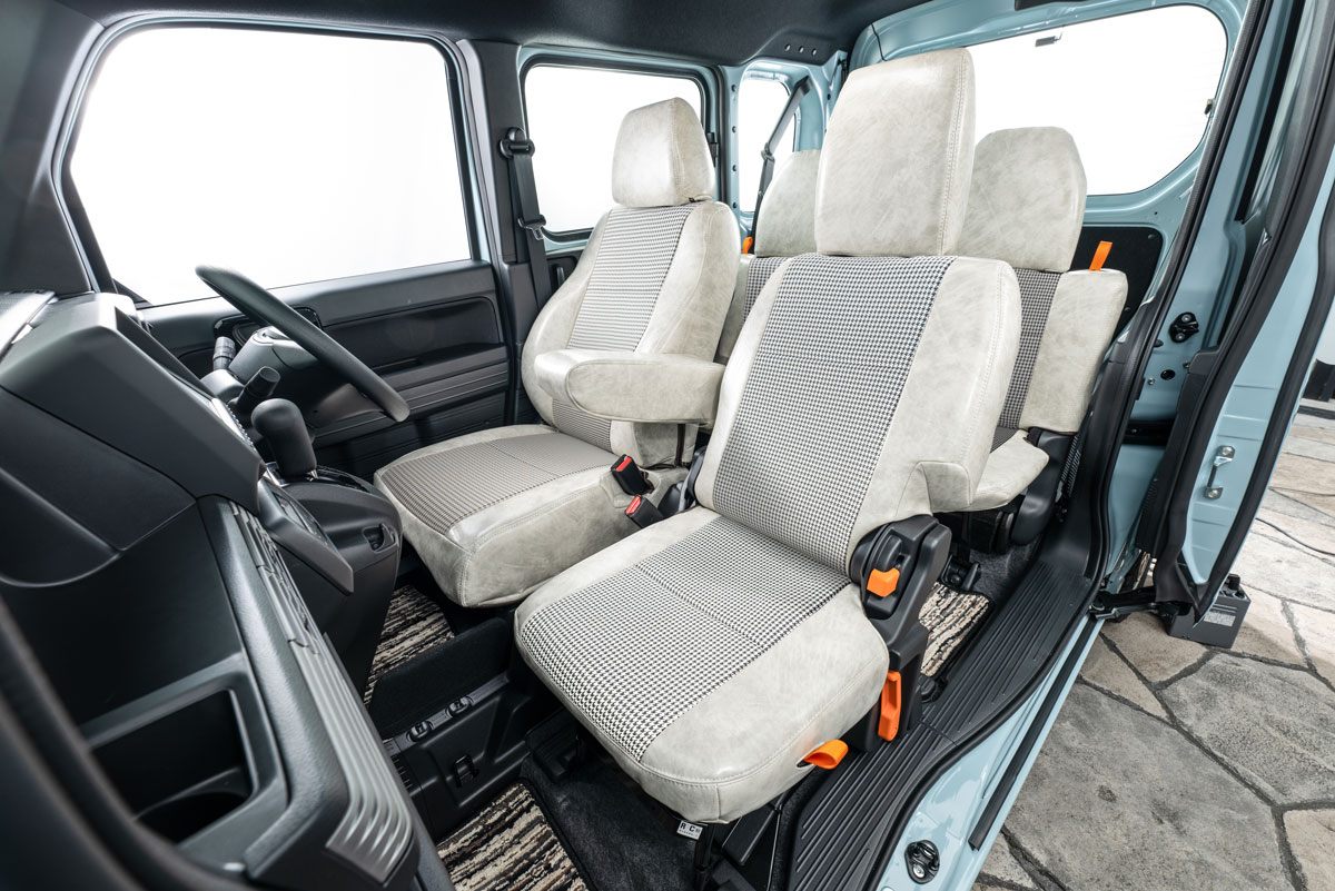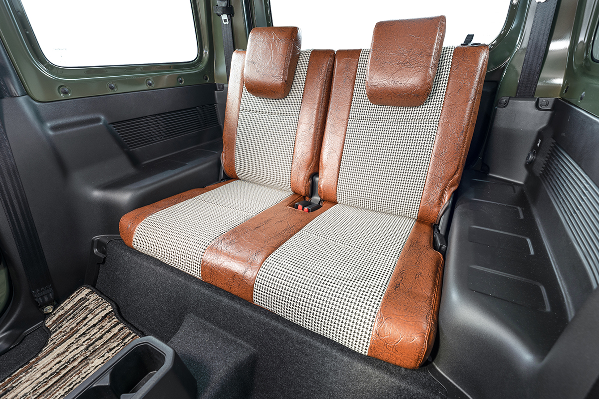 ジムニーJB64後部座席に装着したアンティーク千鳥 アンティークブラウンカラー。