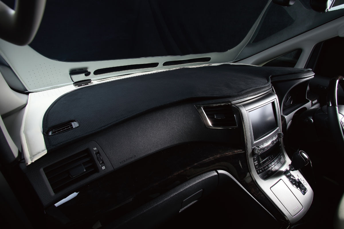 メーター、ナビ上のレザー張り部分は被りません。 |