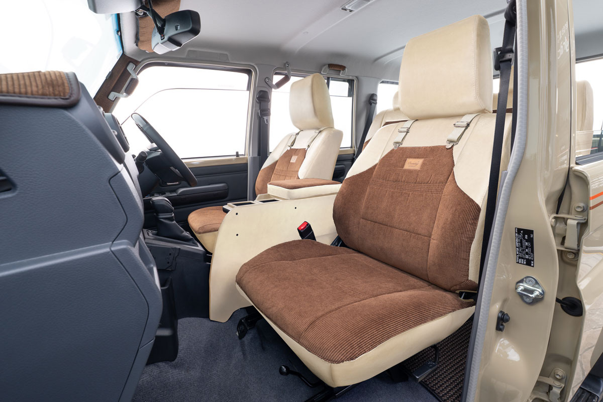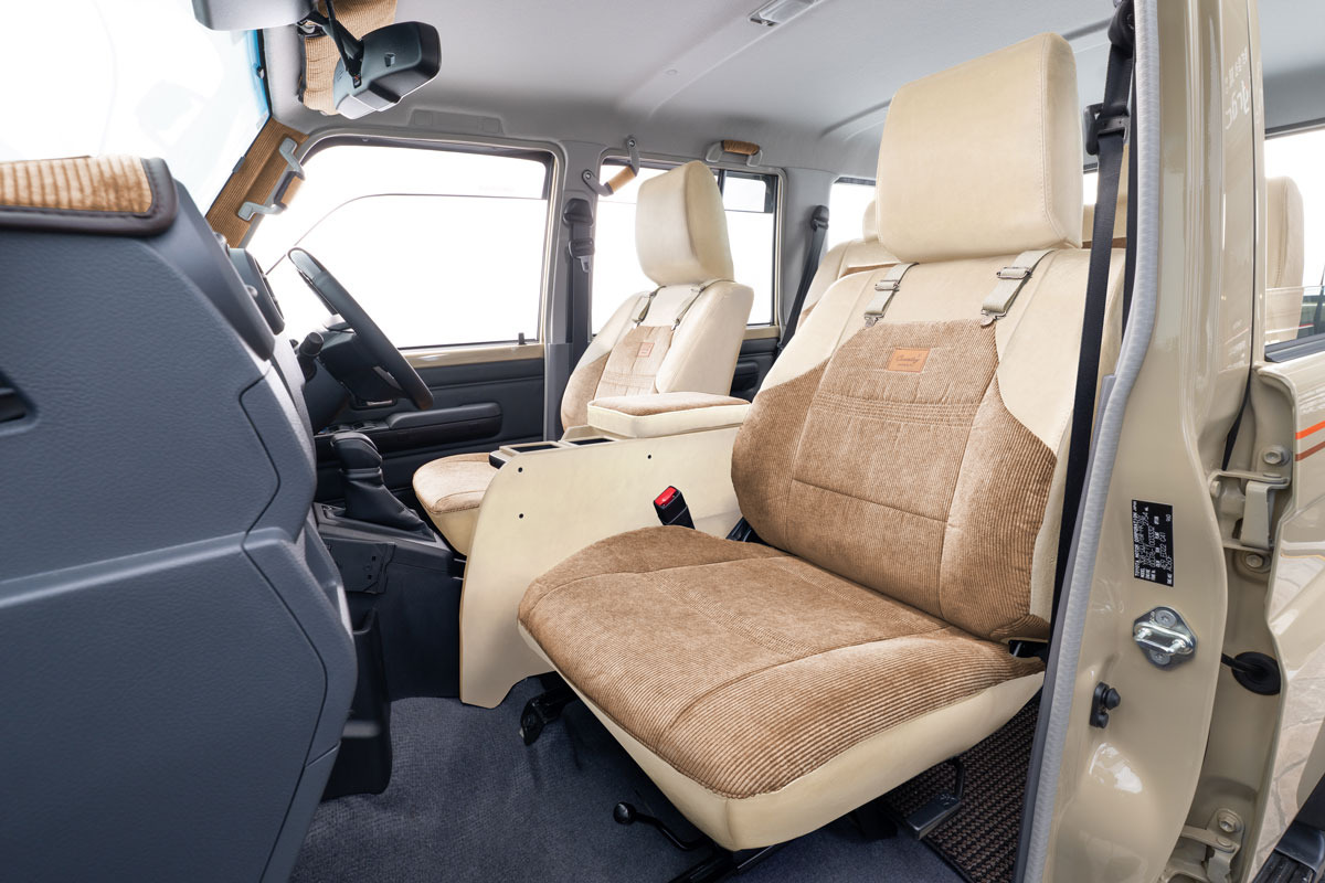 コーデュロイ生地には自動車内装用としての難燃性を確保。