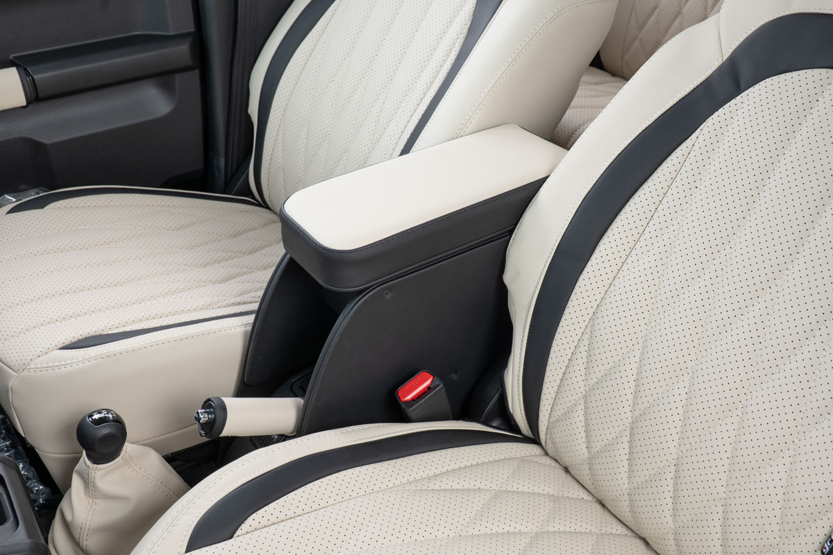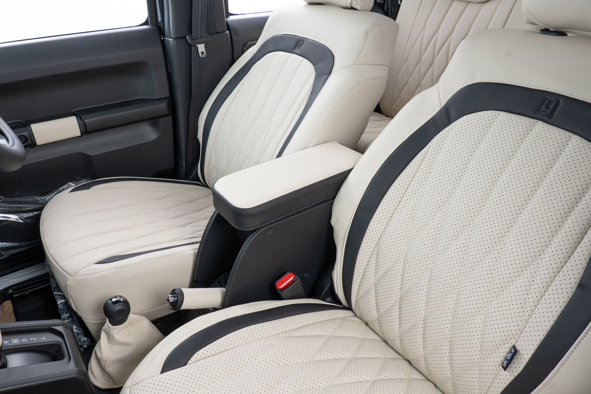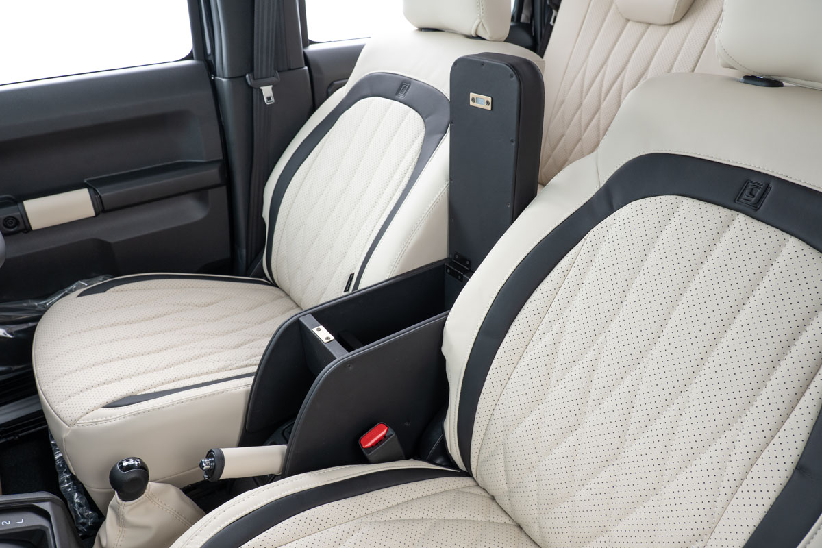 こだわりの一品。市販の汎用品では叶わなかったフィット感とインテリアスタイルの統一感を実現するため、ジムニー専用設計で開発しました。使いやすさとお洒落さを両立した、大人のジムニーカスタムアイテムです。 製品紹介。-グレイスのシートカバーと完璧なトータルコーディネート-シートカバー同様、オーダーメイドスタイルでご注文いただけるので、車内全体のトータルコーディネートをお楽しみいただけます。様々なデザインとカラーの組み合わせが可能です。グレイスならではの幅広いデザインをお客様のスタイルでお楽しみください!-選べる構造デザイン&しっかり収納-ジムニーの様々な利用シーンや生活スタイルに合わせてお選びいただける2種のデザインを用意しました!スマホが収納できるサイズの小物入れを設定。後部座席側には標準仕様と同様に、ドリンクホルダーを2ヶ所確保。 Ver.3収納スペース。肘置き下に小物入れスペースがあります。