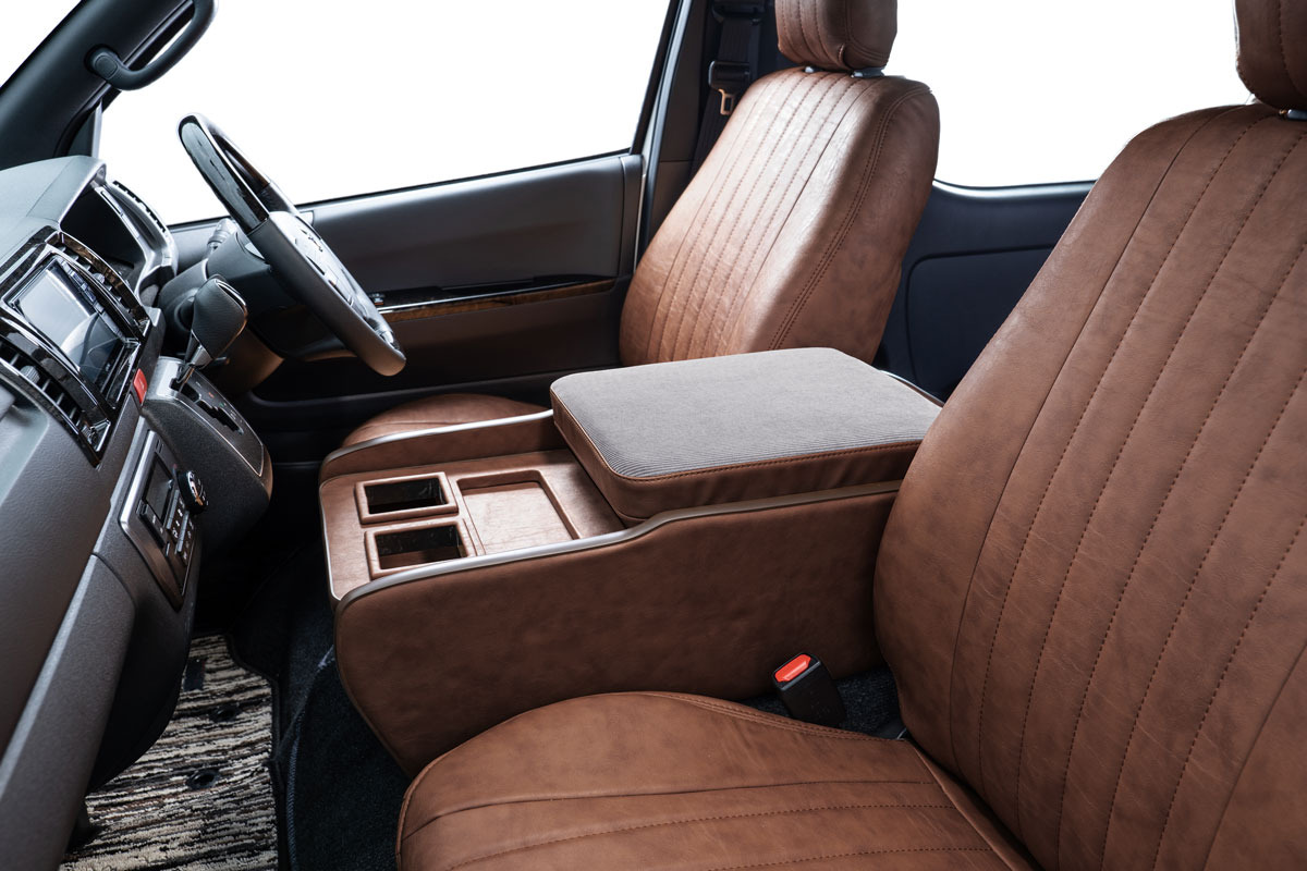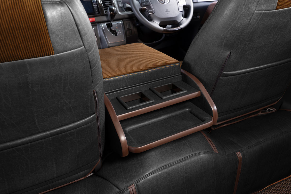 コンソール側面パネル部分にビス止めを見せないのは、当社のこだわりポイント。車内のスタイリッシュさに一段と磨きが掛かる特別な仕様です。