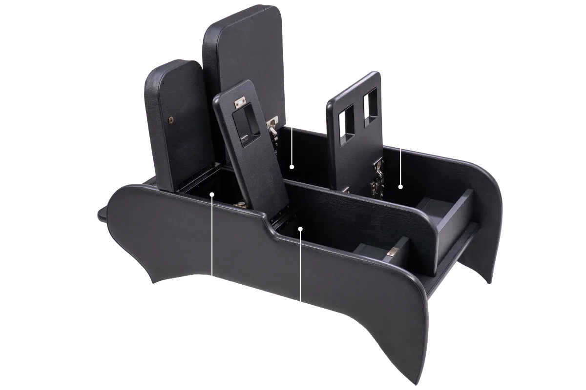 前後2か所に設計された開閉式の収納ボックスは、様々なアイテムをしっかりと収納可能。