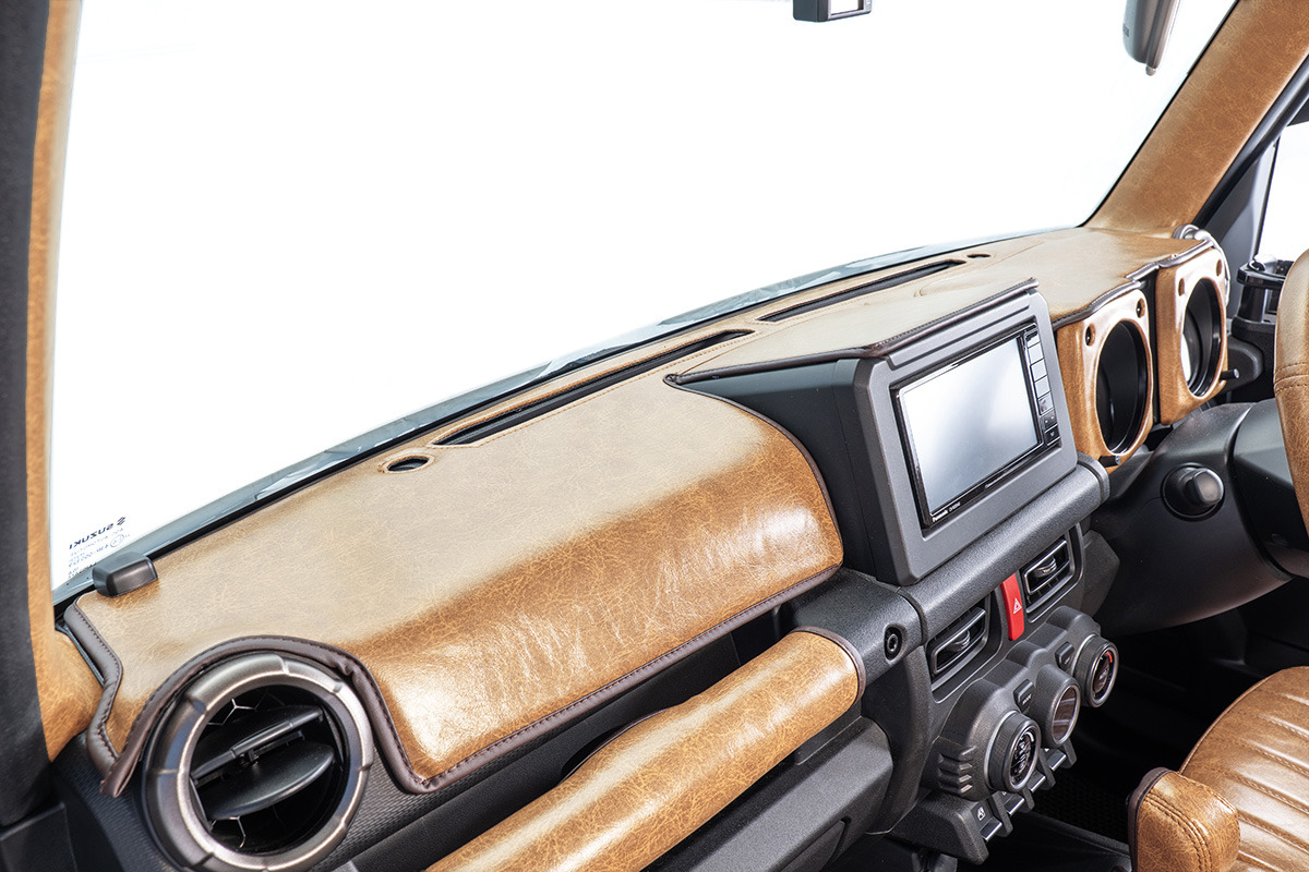 メーター、ナビ上のレザー張り部分は被りません。 |