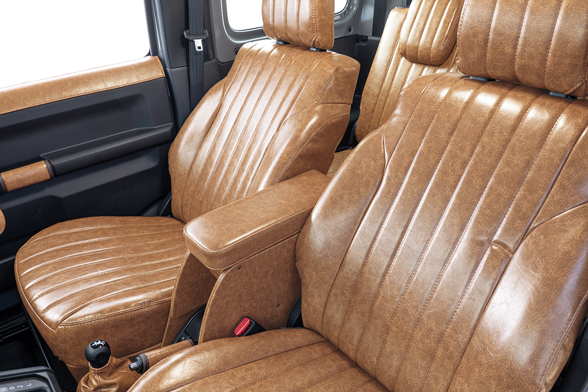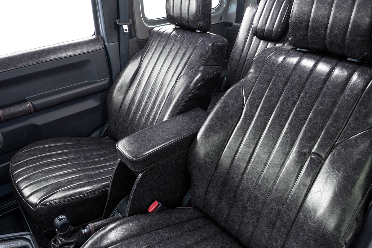 こだわりの一品。市販の汎用品では叶わなかったフィット感とインテリアスタイルの統一感を実現するため、ジムニー専用設計で開発しました。使いやすさとお洒落さを両立した、大人のジムニーカスタムアイテムです。製品紹介。-グレイスのシートカバーと完璧なトータルコーディネート-シートカバー同様、オーダーメイドスタイルでご注文いただけるので、車内全体のトータルコーディネートをお楽しみいただけます。様々なデザインとカラーの組み合わせが可能です。グレイスならではの幅広いデザインをお客様のスタイルでお楽しみください!-選べる構造デザイン&しっかり収納-ジムニーの様々な利用シーンや生活スタイルに合わせてお選びいただける2種のデザインを用意しました!スマホが収納できるサイズの小物入れを設定。後部座席側には標準仕様と同様に、ドリンクホルダーを2ヶ所確保。 Ver.1 収納スペース。肘置き下に小物入れスペースがあります。