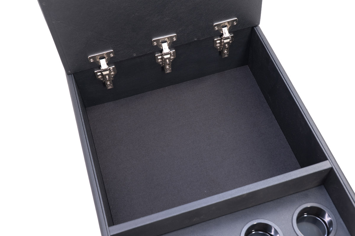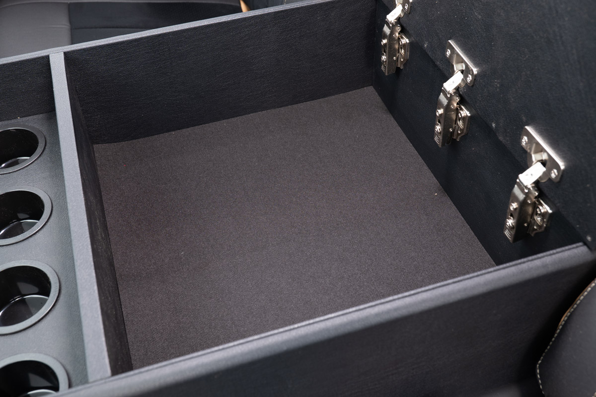 安定感のあるアームレストの下には従来のコンソールの収納をはるかに超えるスペースを用意。