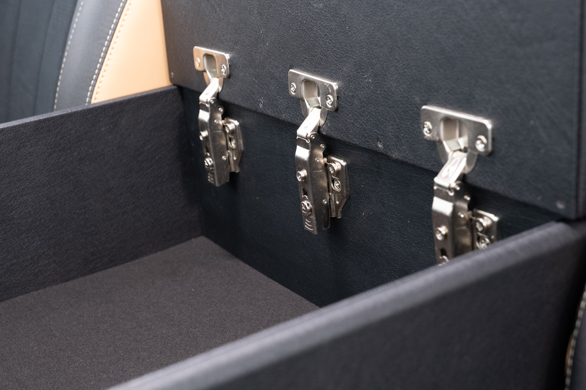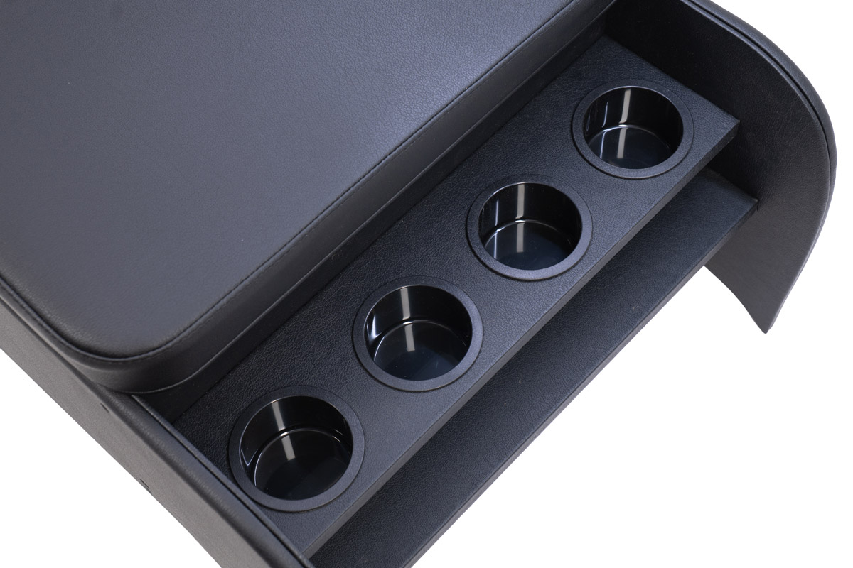 シンプルかつ高級感を目指してデザインされたコンソール。王道のブラックレザーで全体をまとめ、スポーティーさも感じられるデザインとなっています。