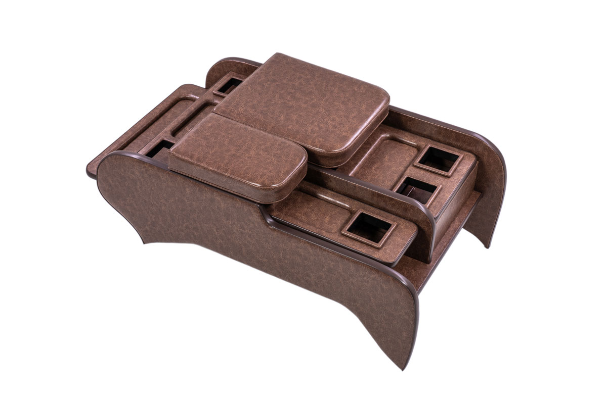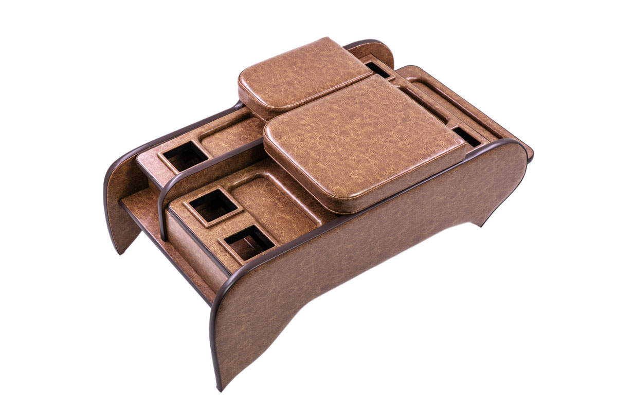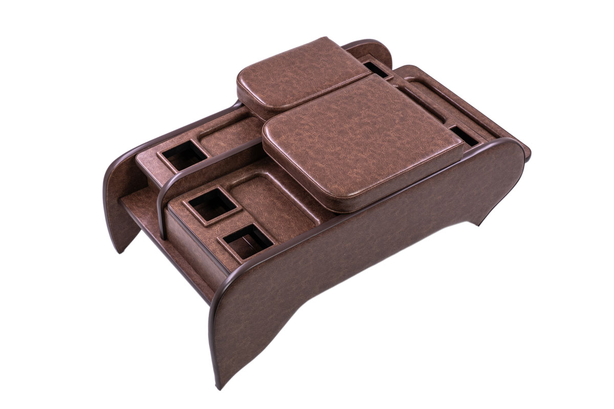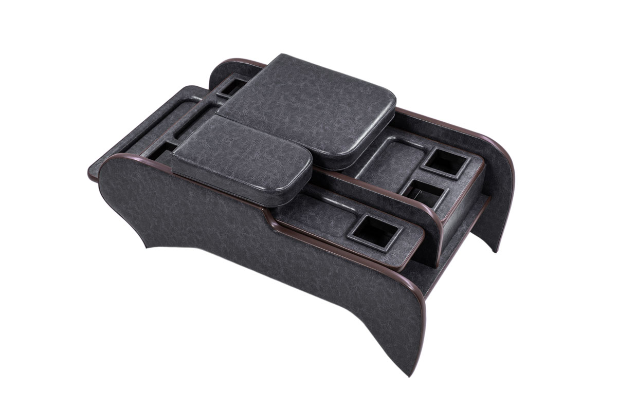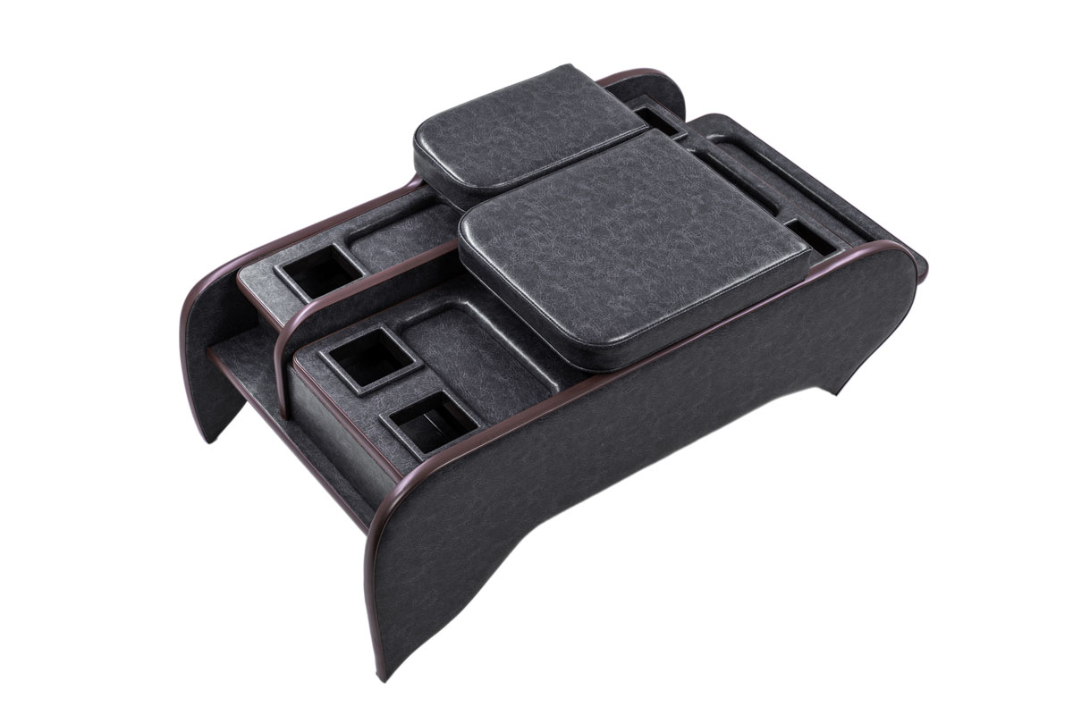 収納の蓋の役目を担ったアームレストは運転席助手席ともに使用可能で、天面にはウレタンクッションを内包。肘を置いたときの使い心地に配慮した設計です。