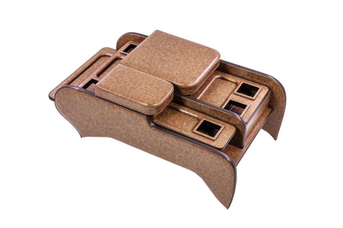 純正コンソールに用意されたドリンクホルダー2箇所に加え、小物トレーを追加設計しました。