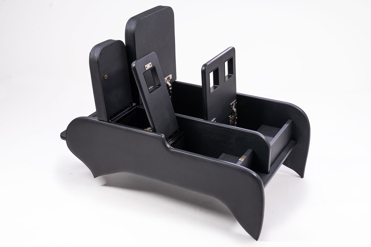 シンプルかつ高級感を目指してデザインされたコンソール。王道のブラックレザーで全体をまとめ、スポーティーさも感じられるデザインとなっています。