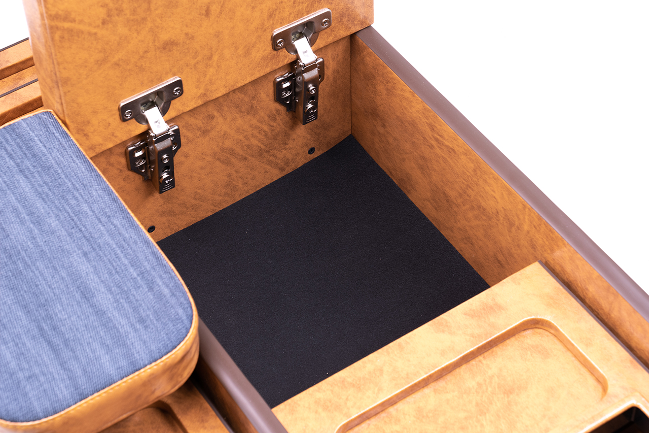 前後2か所に設計された開閉式の収納ボックスは、様々なアイテムをしっかりと収納可能。