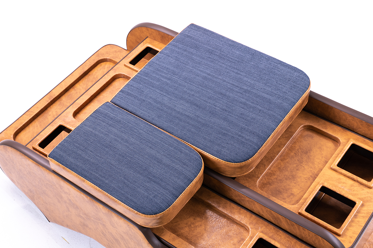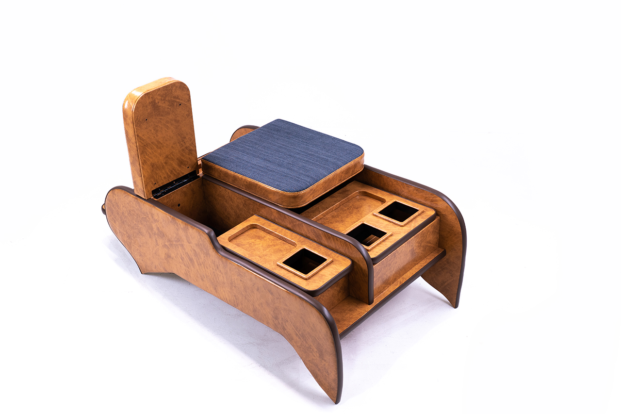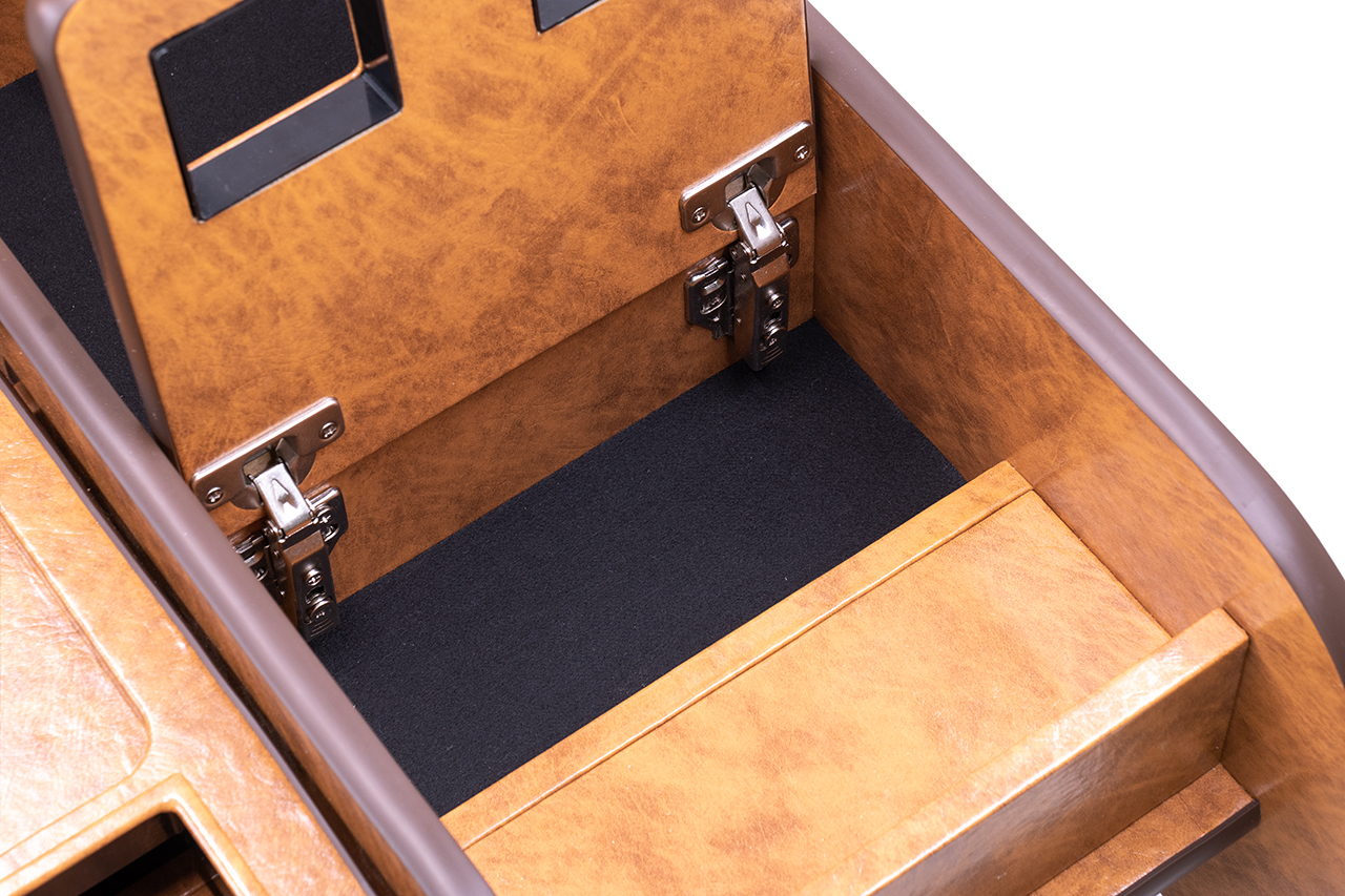 収納の蓋の役目を担ったアームレストは運転席助手席ともに使用可能で、天面にはウレタンクッションを内包。肘を置いたときの使い心地に配慮した設計です。