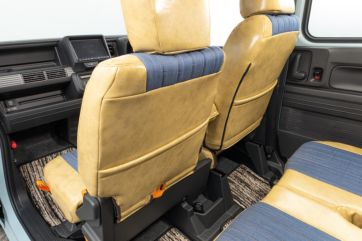 N-VAN後部座席に装着したアンティークデニム アンティーククリームイエローカラー。