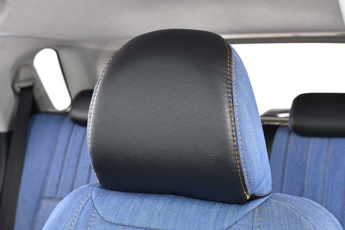ハスラー運転席助手席に装着したM.I.C DENIMシートカバーヘッドレスト部分