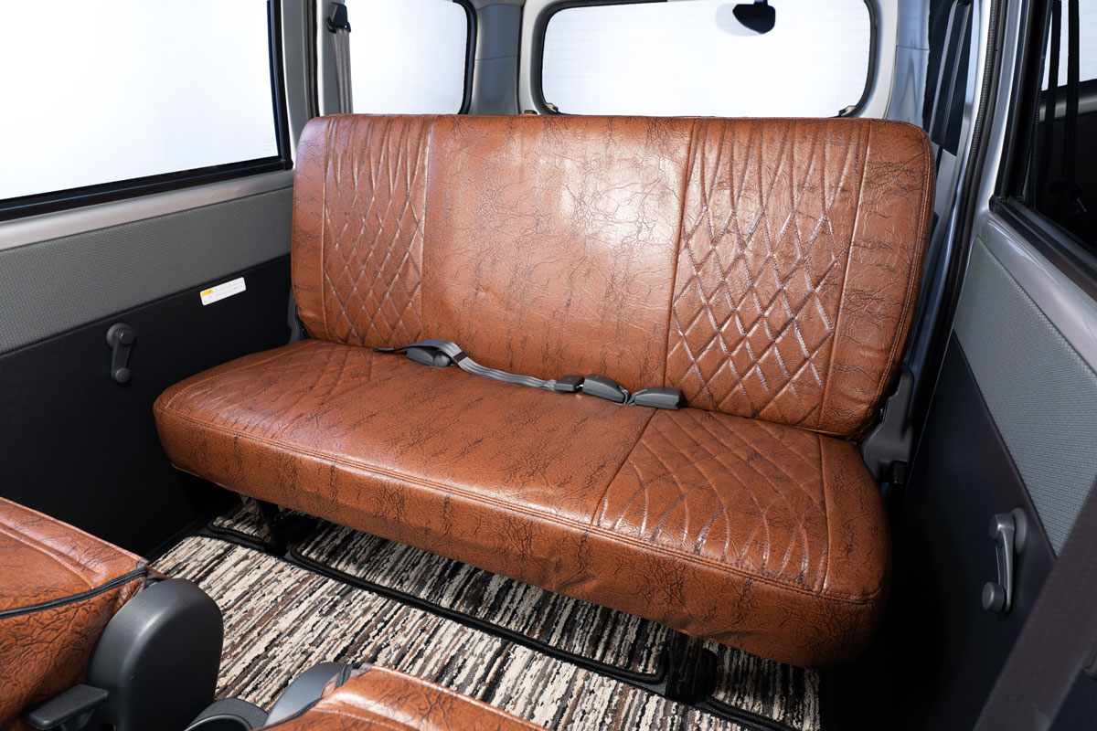 後部座席に取り付けられたシートカバーは、アンティークデザインSシリーズです。デザインDとは異なります。画像のフロアマットはアンティークシリーズの商品です。 レザーカラー比較