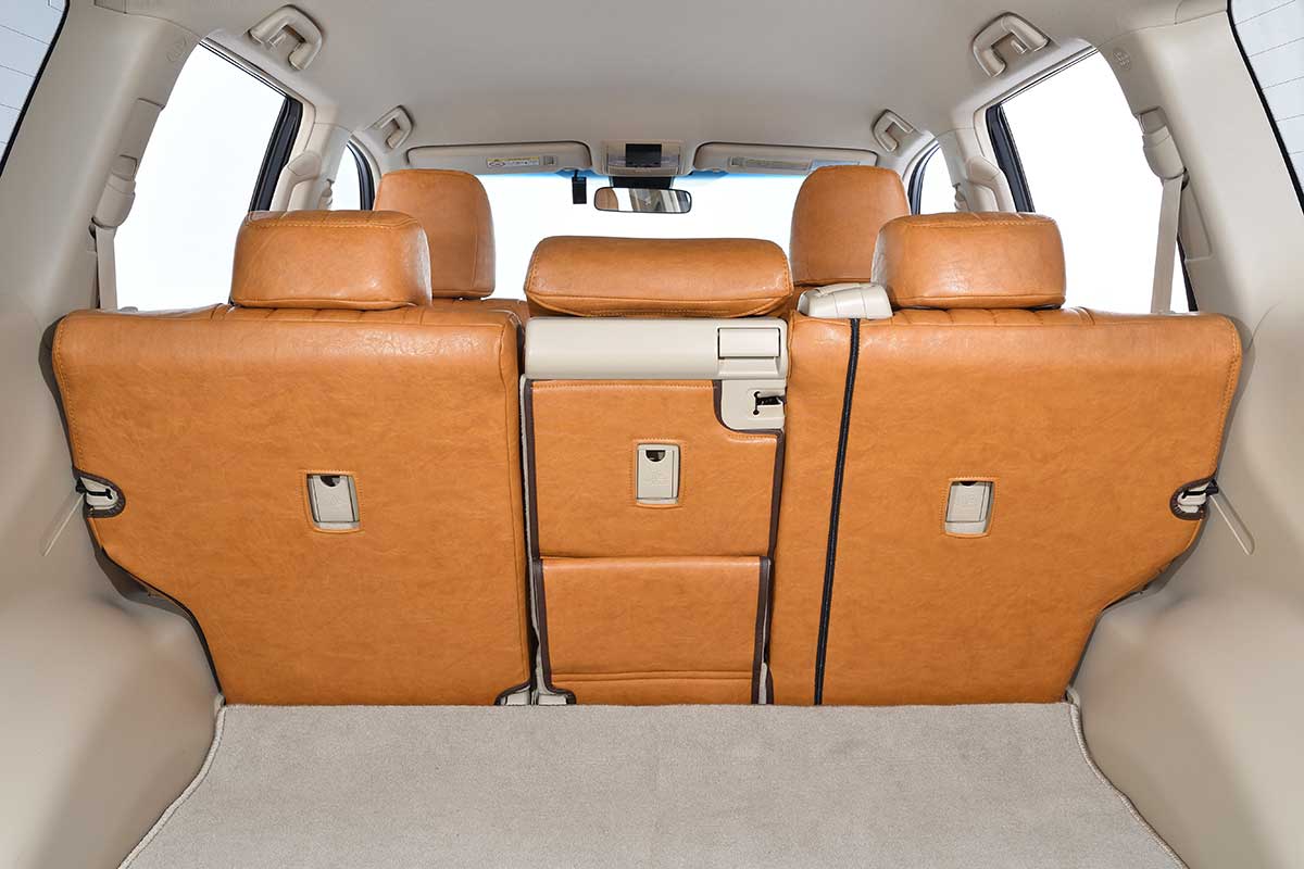 150PRADO後部座席装着イメージ。プラドの様な複雑な形状のシートにも見事にフィットする様にデザイン。