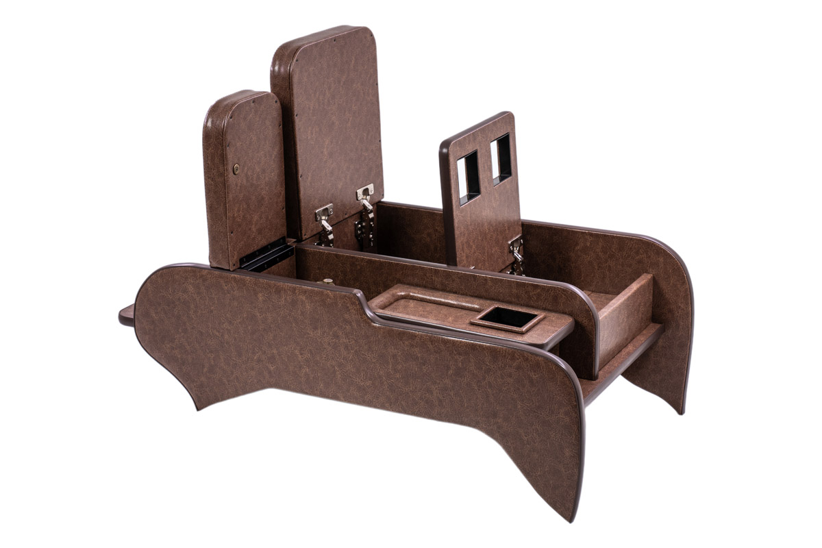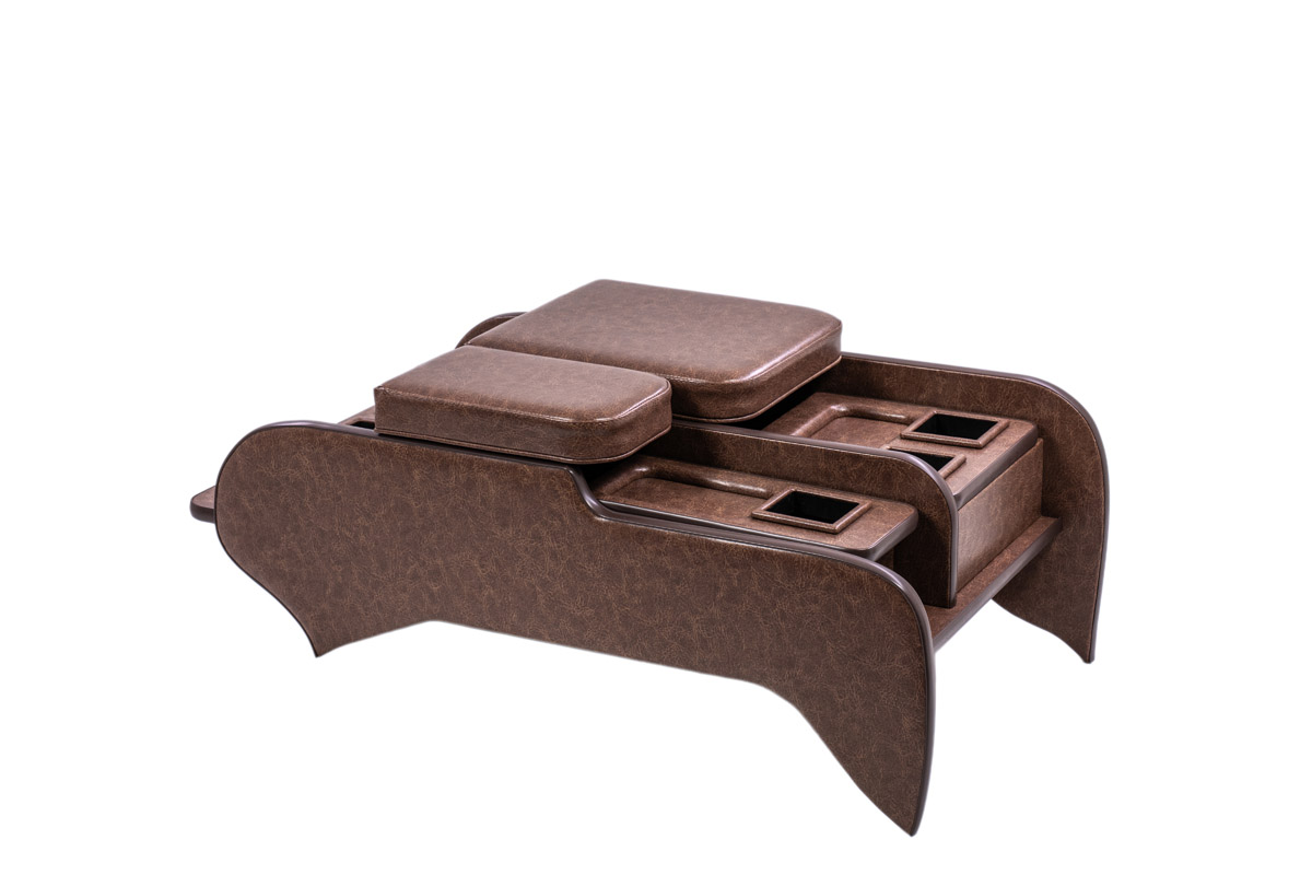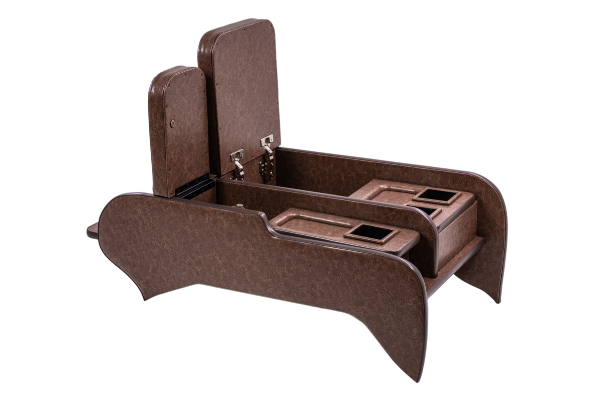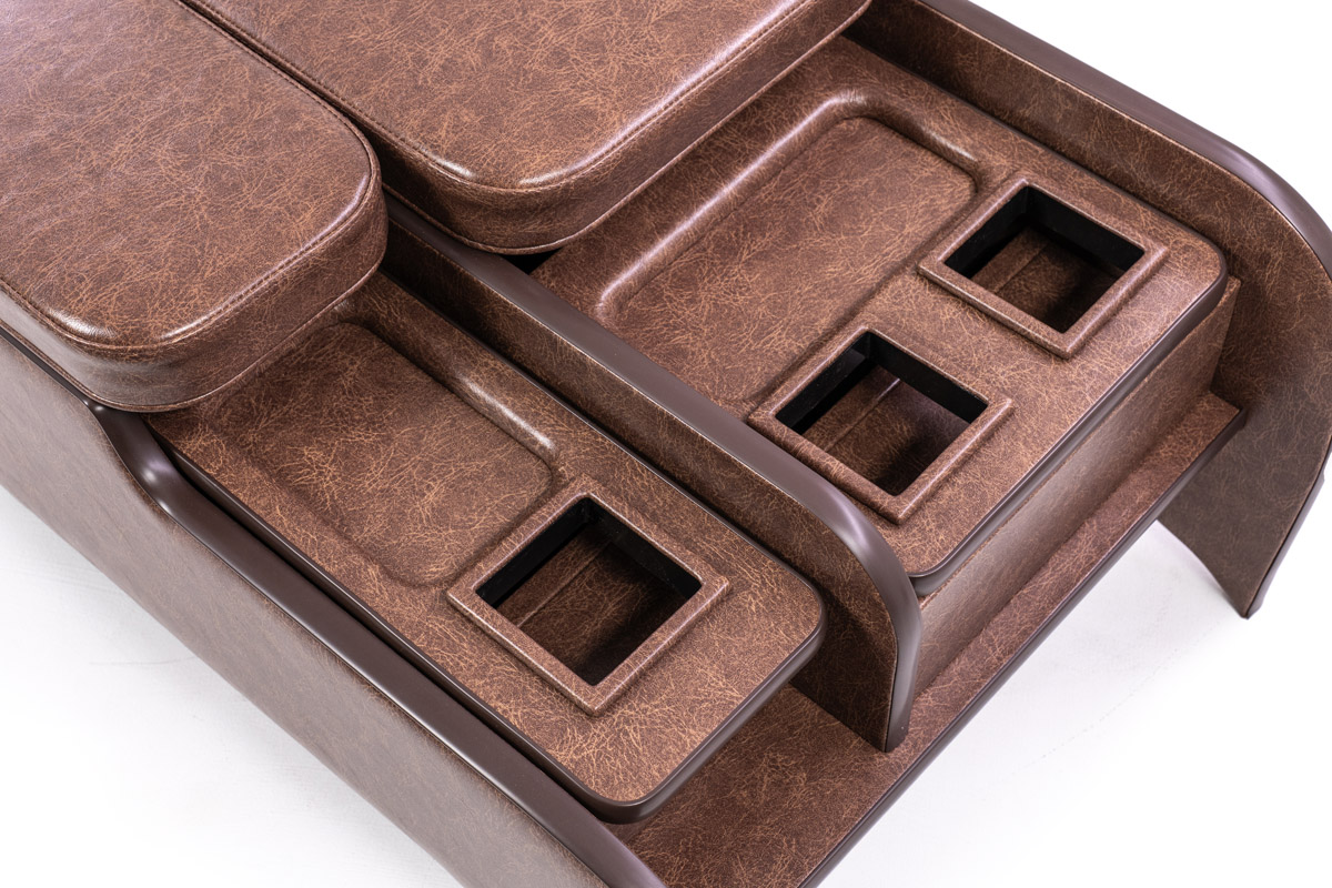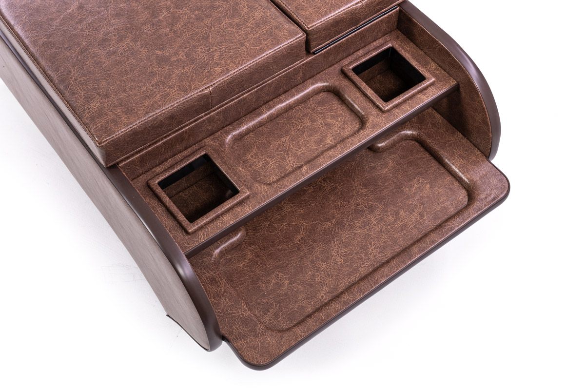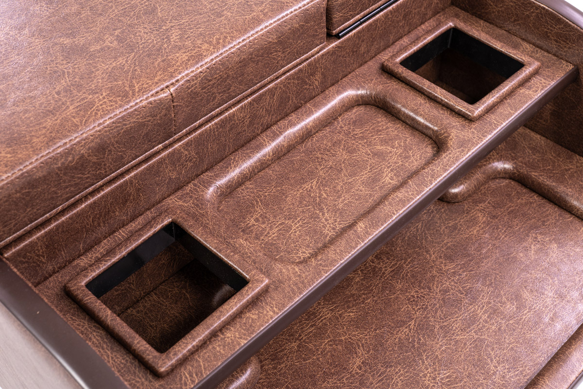 収納の蓋の役目を担ったアームレストは運転席助手席ともに使用可能で、天面にはウレタンクッションを内包。肘を置いたときの使い心地に配慮した設計です。