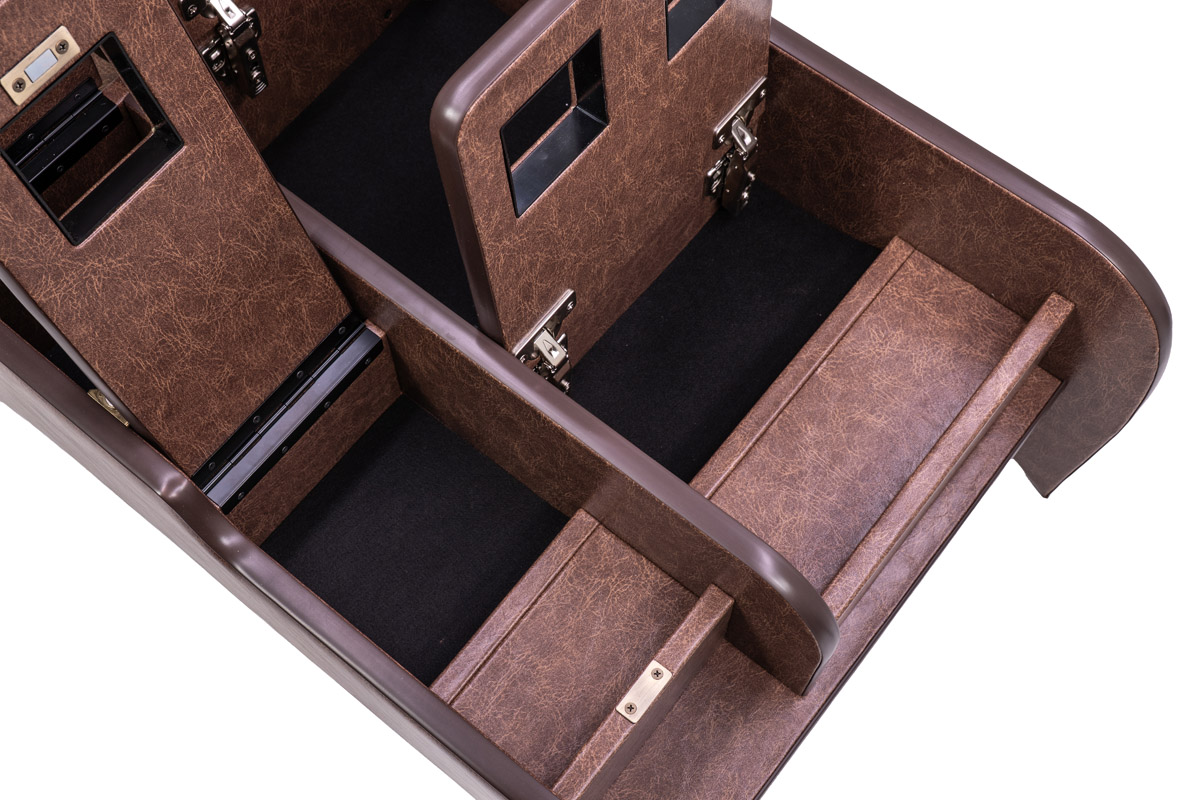 前後2か所に設計された開閉式の収納ボックスは、様々なアイテムをしっかりと収納可能。