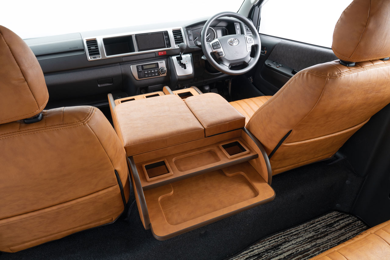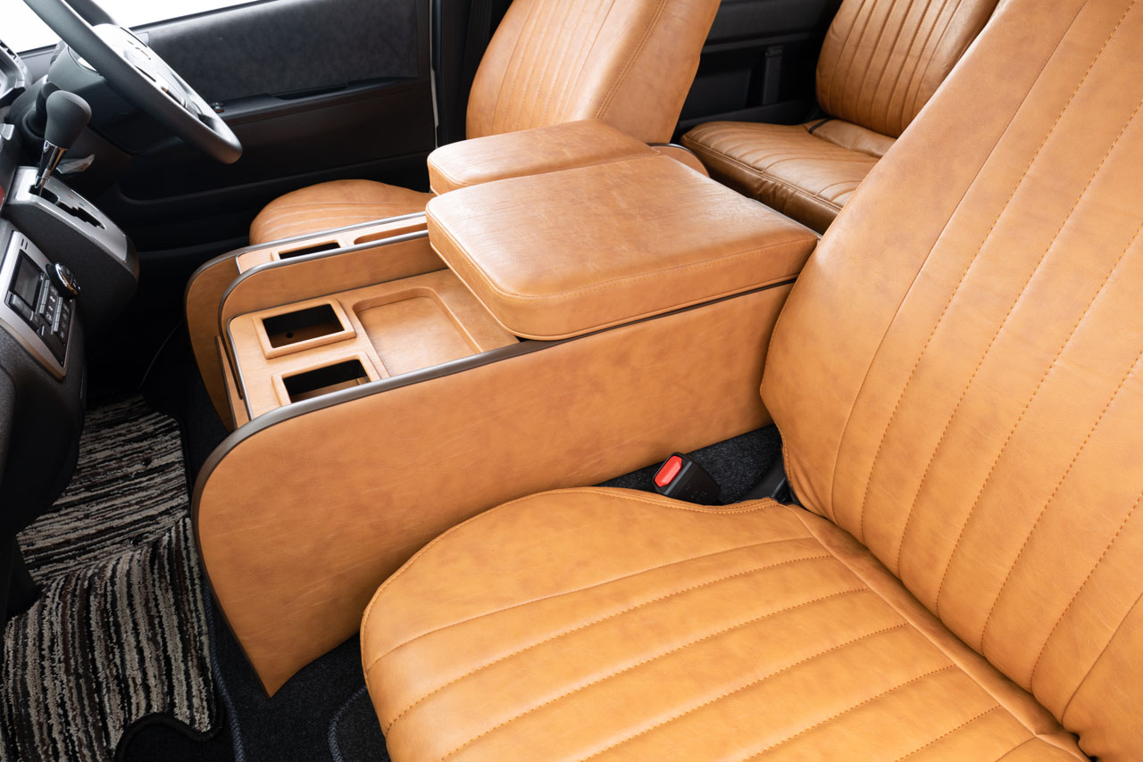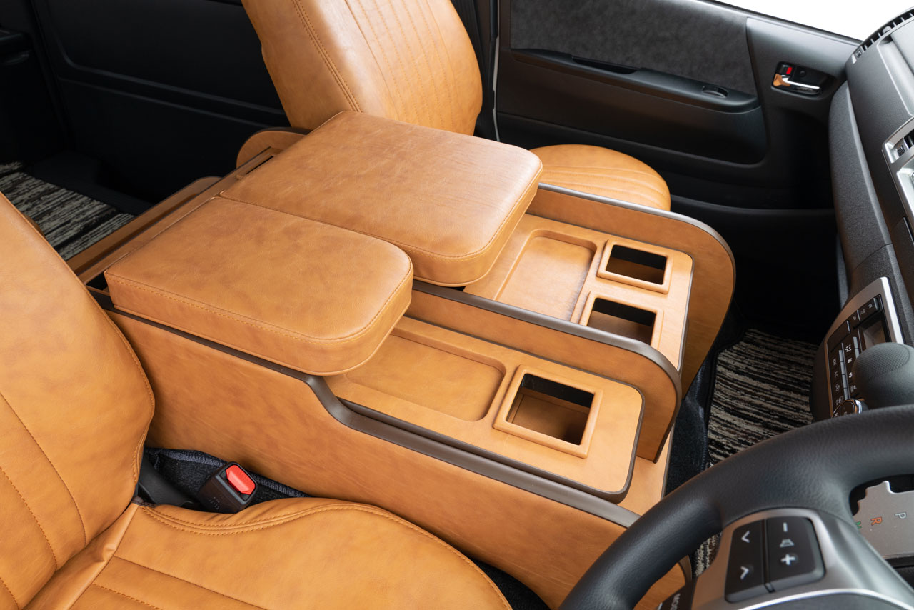 コンソール側面パネル部分にビス止めを見せないのは、当社のこだわりポイント。車内のスタイリッシュさに一段と磨きが掛かる特別な仕様です。