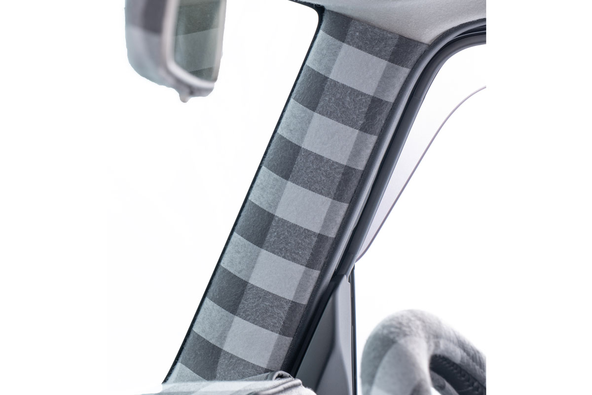 | 備考 | ※この商品はベースになるピラーパネルに生地を手作業で貼り付けて制作しています。その為、貼り付け時に使用したノリなどがパネル内側にはみ出したり、付着している場合がございます。お届け時にはノリは乾燥した状態となり、車本体には付着することはございませんので、ご理解の上ご購入頂きますようお願い致します。 ※掲載画像はジムニーノマド用のイメージです。 |