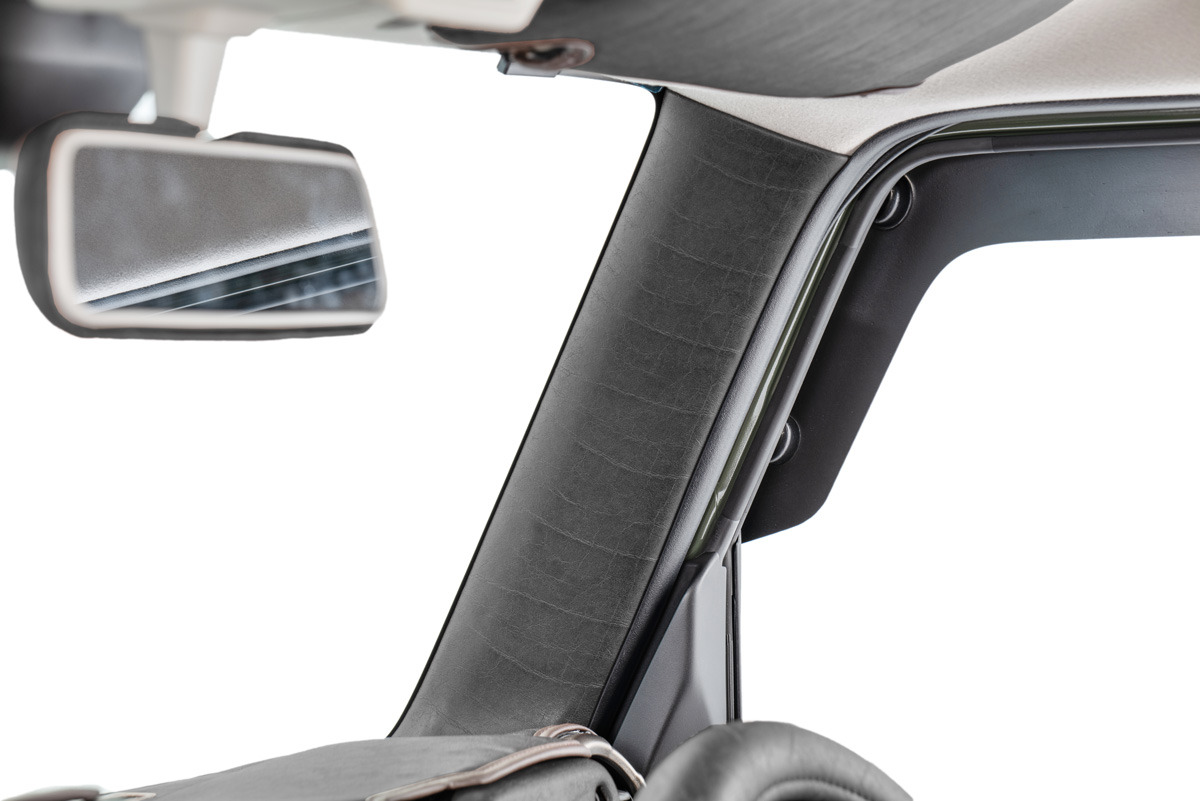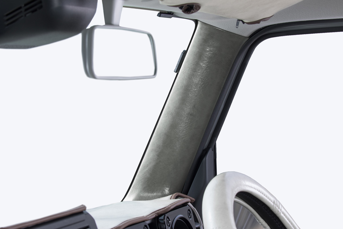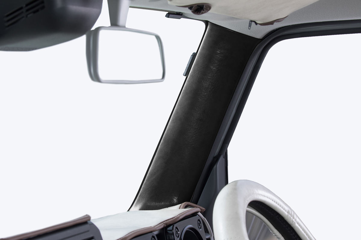 | 装着 | 純正部品をベースに張り替え施工をした完成品のピラーパネルです。装着は純正ピラーパネルとの交換になります。 |