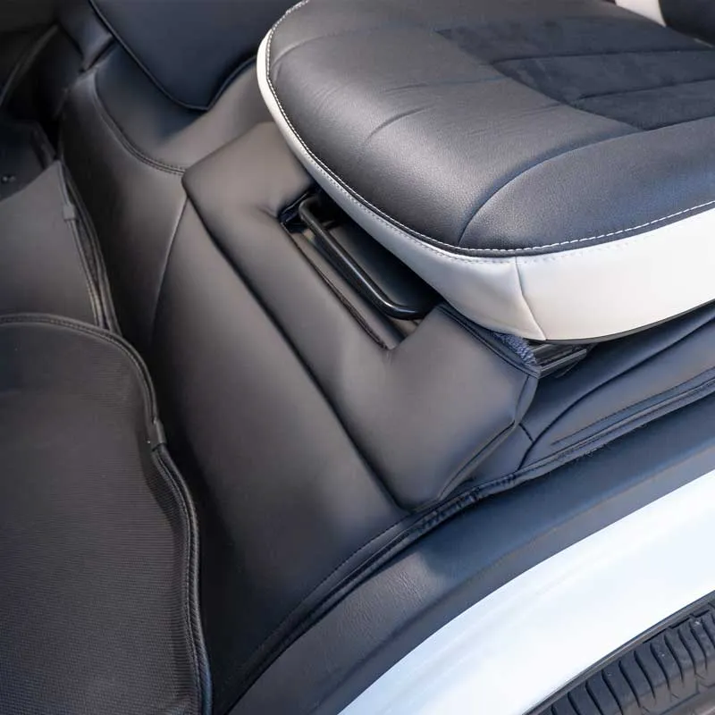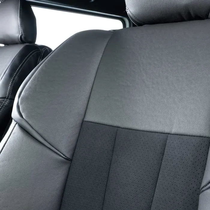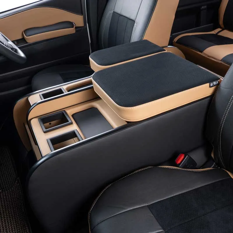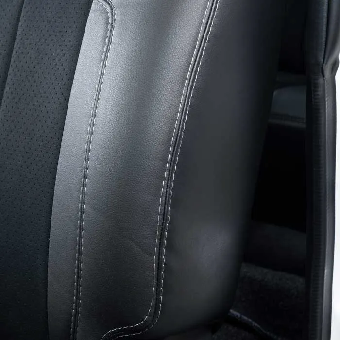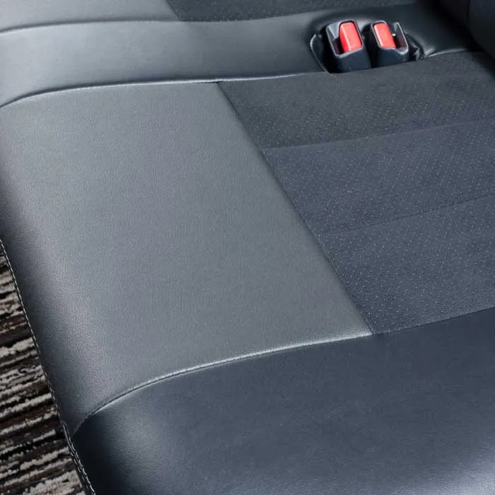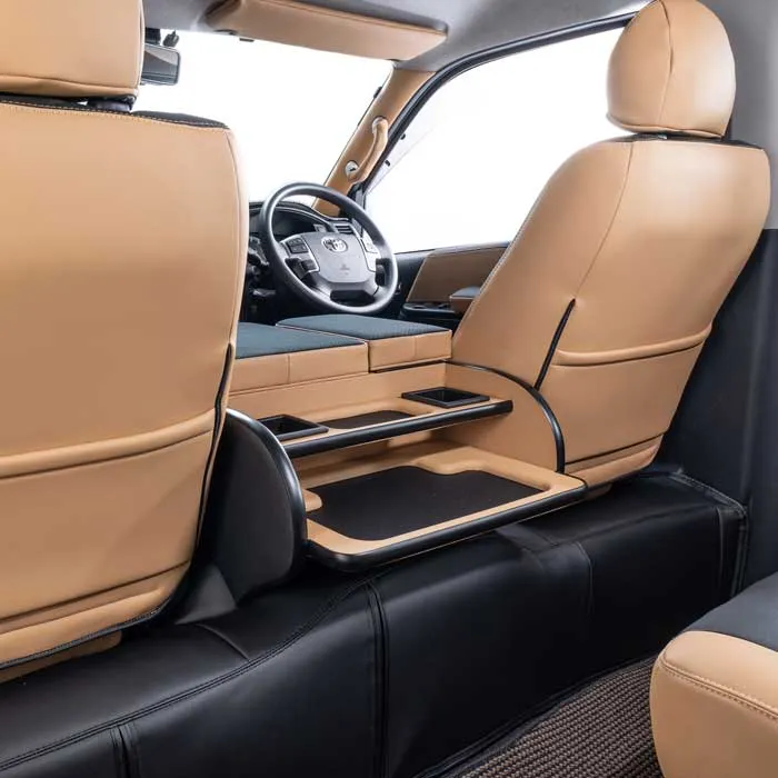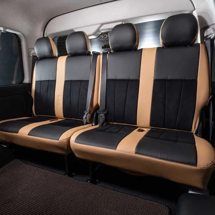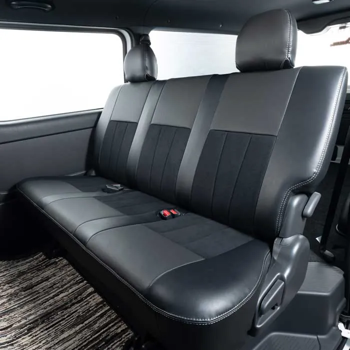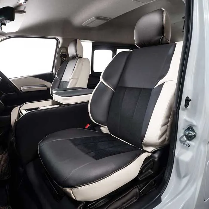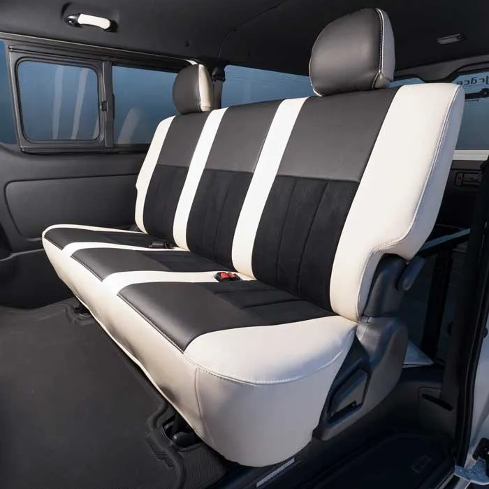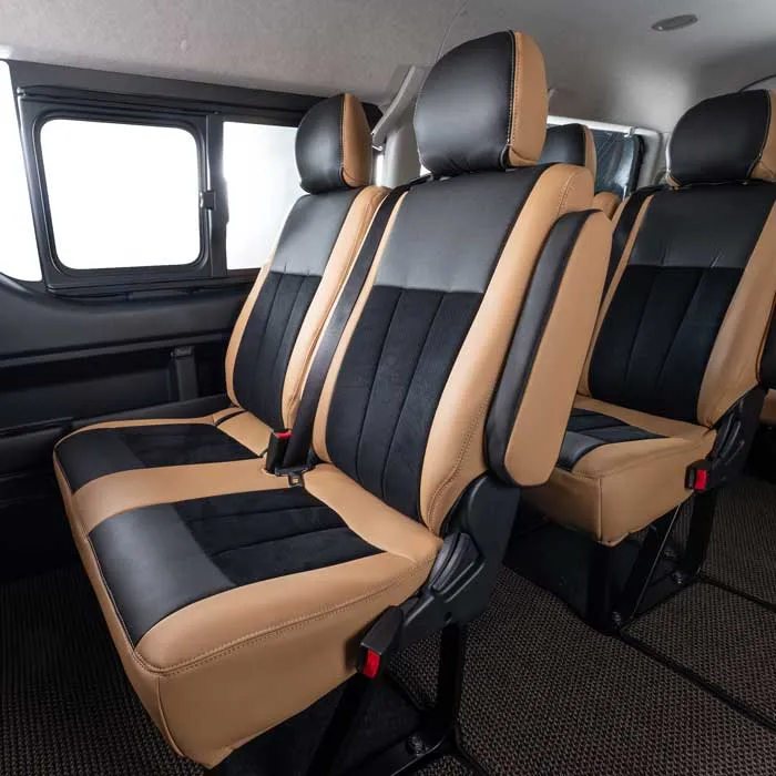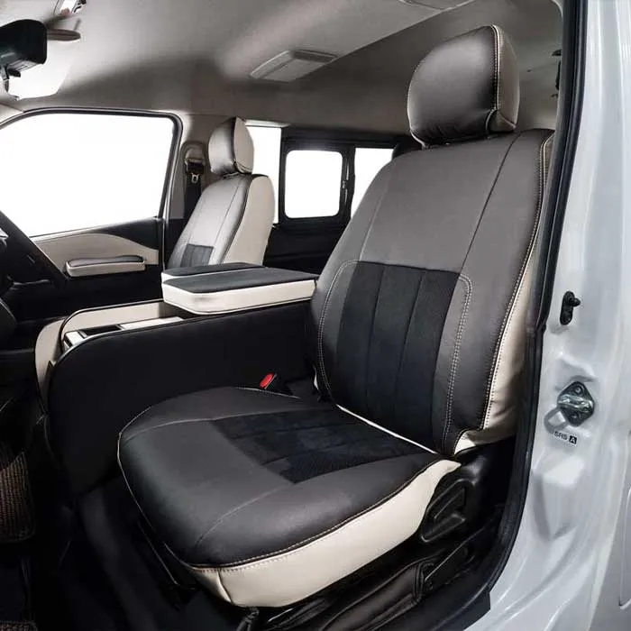ノーマルタイプのカバーにはシート元の形状にピッタリとフィットするように設計。純正形状の使用感に高級レザーの触り心地がプラスされた使用感。ハイエースのシンプルなシート形状のままに贅沢な雰囲気を演出します。