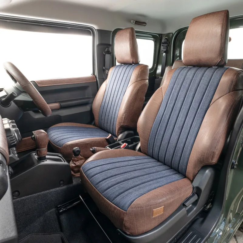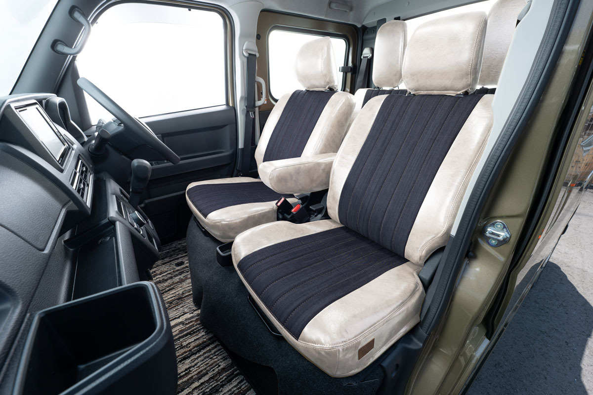 人気シートカバーシリーズ、アンティークにオリジナルデニム生地を組み合わせた